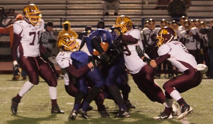 The Shiner defense responded, however, by forcing another Thorndale punt attempt from deep on its own side of the 50. The deep snap went over punter Austin's head and the Bulldogs were forced to turn the ball over on downs at their own 7. Three plays later, Marcus Coleman punched it in from two yards out for what would prove to be the winning score.