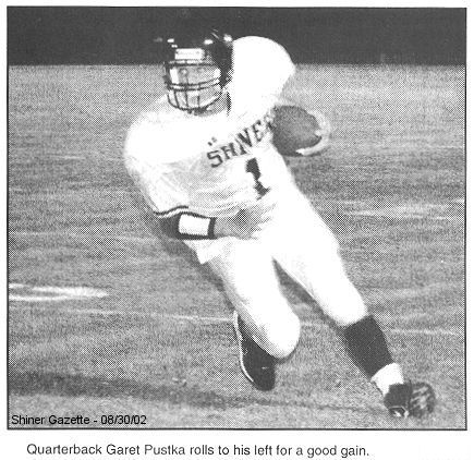 Quarterback Garet Pustka rolls to his left for a good gain. (all photos by Shiner Gazette)