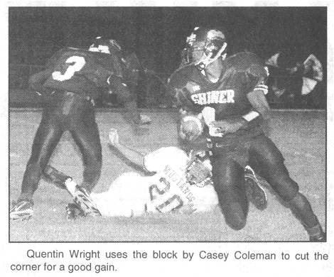 Quentin Wright uses the block by Casey Coleman to cut the corner for a good gain. (all photos by Shiner Gazette)