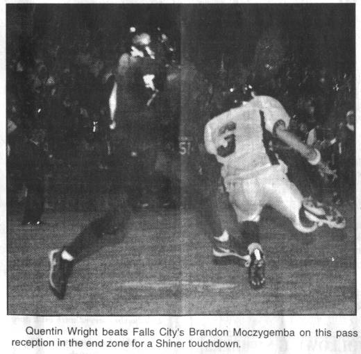 After a penalty step off against Falls City, Eric Murphy split the line and raced 50 yards to the end zone and Shiner led 26-7 with 9:40 left in the third period.