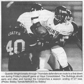 The Comanches were led by Eric Murphy with 115 yards on 16 carries. Quentin Wright carried nine times for 95 yards and Garet Pustka had 62 yards on 12 carries.