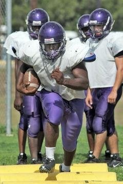 Shiner running back Josh Greathouse runs through agility drills for backs and receivers during practice on Monday.