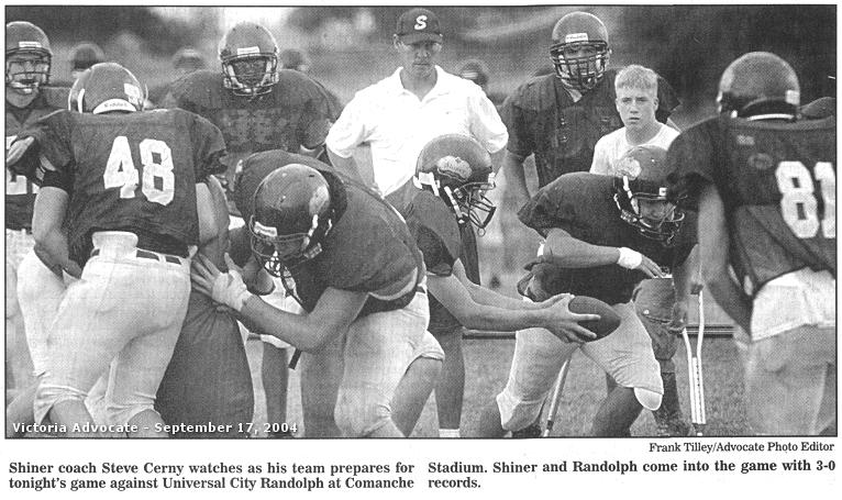 But what matters most to Shiner is it continues to win as it has for the past six seasons. Shiner, which is ranked No. 3 in the state Class 1A poll, will take a 3-0 record into today's final non-district game against Universal City Randolph (3-0) at 7:30 p.m. at Comanche Stadium.