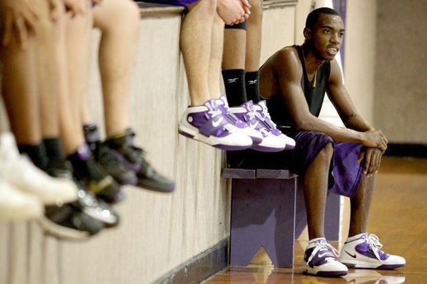 Shiner High School sophomore guard Evel Jones takes a short rest on the side of the court during Wednesday's team practice.