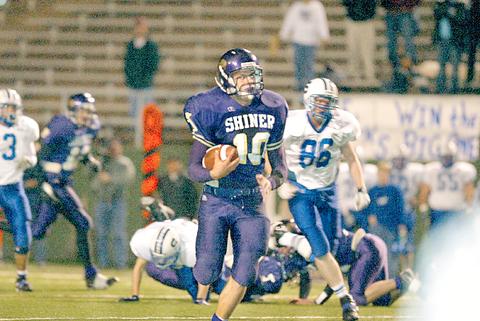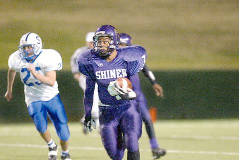 Shiner's Chris Baer (10) breaks loose on his 88-yard kickoff return