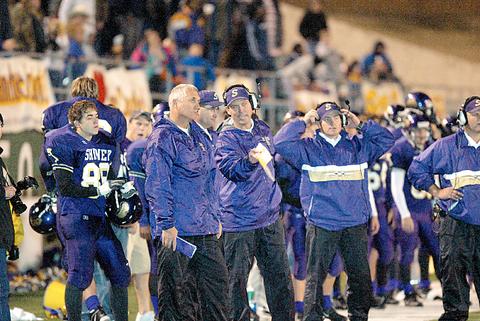 Shiner defensive coordinator Billy Turek gives an official an earful