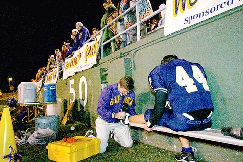 Shiner trainer Greg Goerig tends to the Comanches' Scott Shimek,
