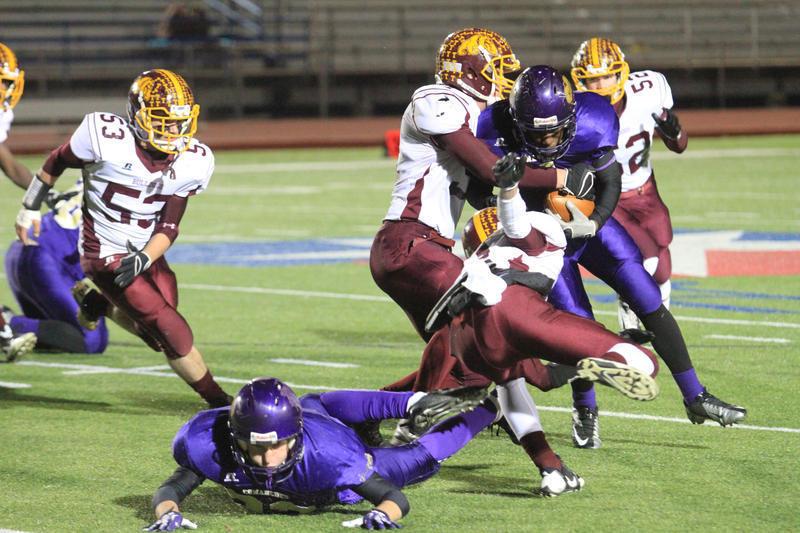 Senior running back Marcus Coleman looks for a running lane during Shiner's 14-10 victory over Thorndale in last week's state quarterfinal victory.