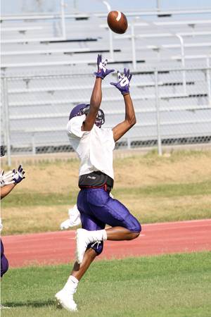 Shiner's Dadrian Taylor catches a pass during an early 2016 season practice.