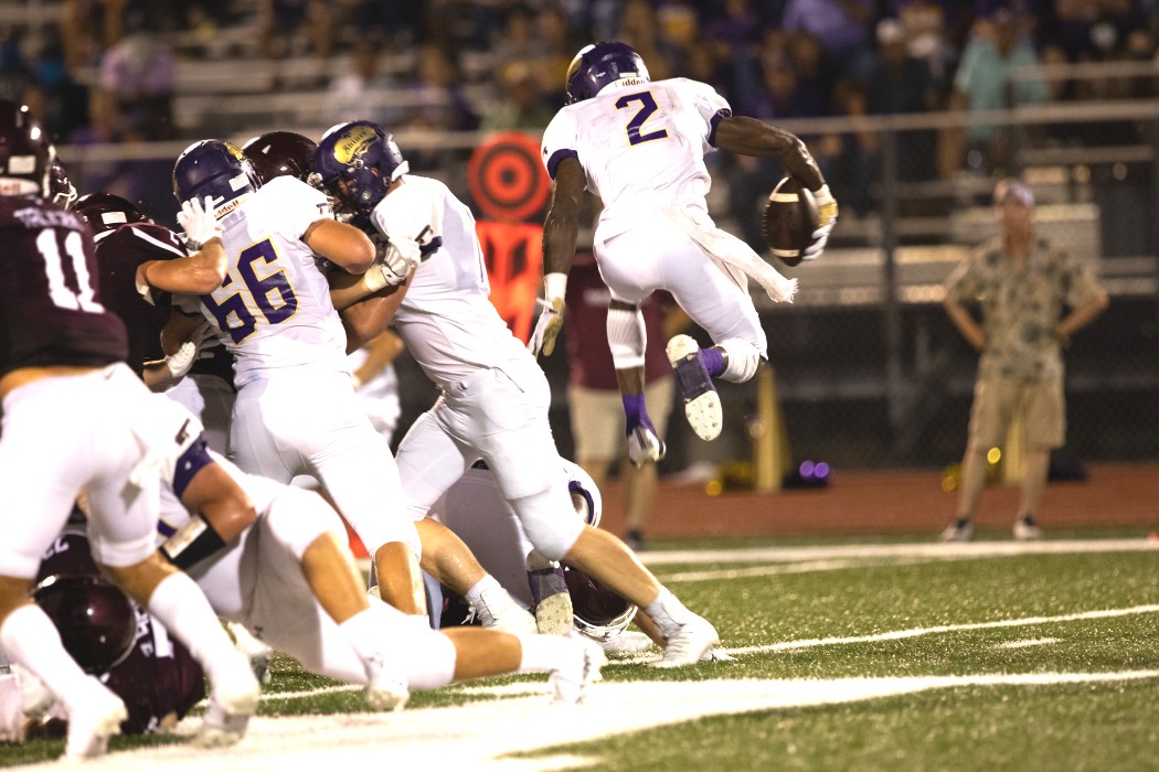 After a scoreless first quarter, Dalton Brooks opened the scoring with a 7-yard touchdown in the second. He would finish the night with 20 carries for 58 yards, two touchdowns and caught two passes for 56 yards.