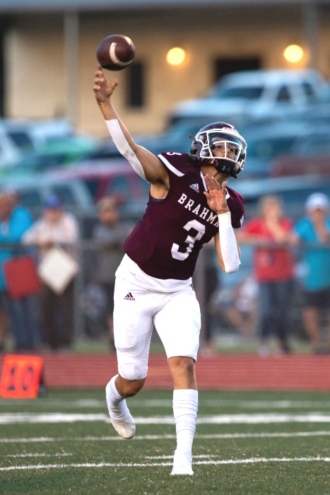 Down by 15 in the fourth quarter, Patek was forced to throw to move the ball. But the Brahmas' final two drives resulted in turnovers on downs as Shiner took the season opening win.