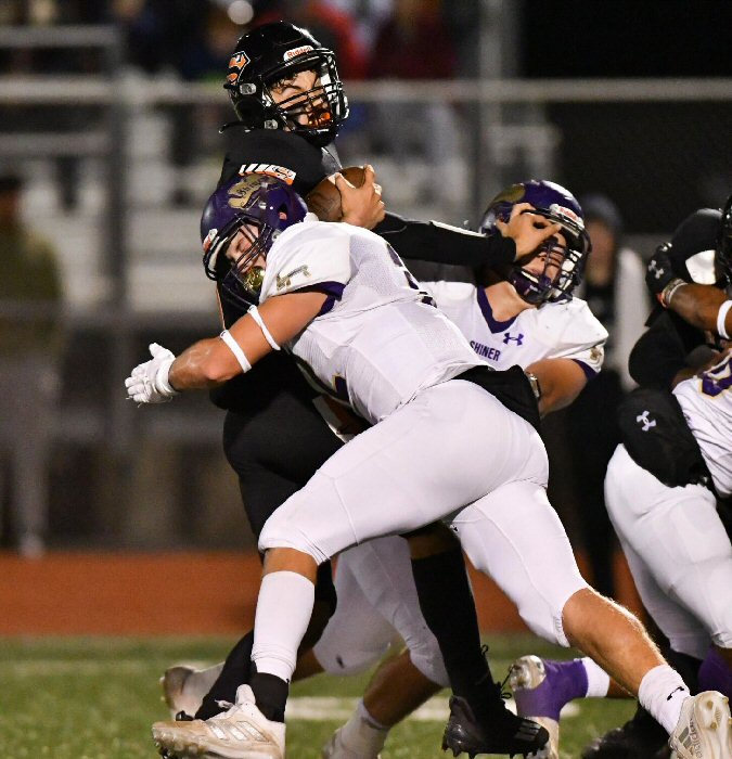 "We knew that we were going to have to get pressure on the quarterback," said Shiner coach Daniel Boedeker. "With their offensive line, they do a pretty good job and we knew we were going to have to send more at times and take some chances with coverage. We got lucky on some things and the kids made some really big plays and that was a big difference in the ballgame."
